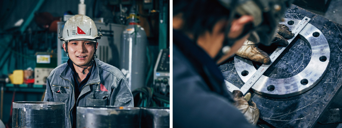 慣れてくると基本的に皆なんでも担当するんですけど、主に溶接や鍛治ですね。自分的にはどっちもしていきたいですけど、現在は溶接もやりつつ鍛冶担当で勉強中です。何もない状態から自分で作っていって、物が出来上がった時は嬉しいです。やったという達成感がありますね。